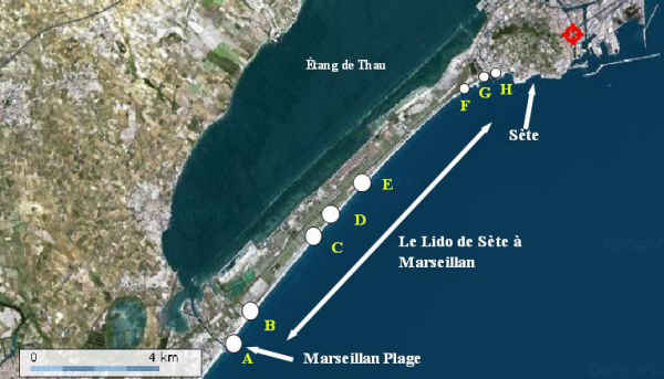 A partir de photos aériennes et de leur échelle, nous avons calculé l'aire du lido.