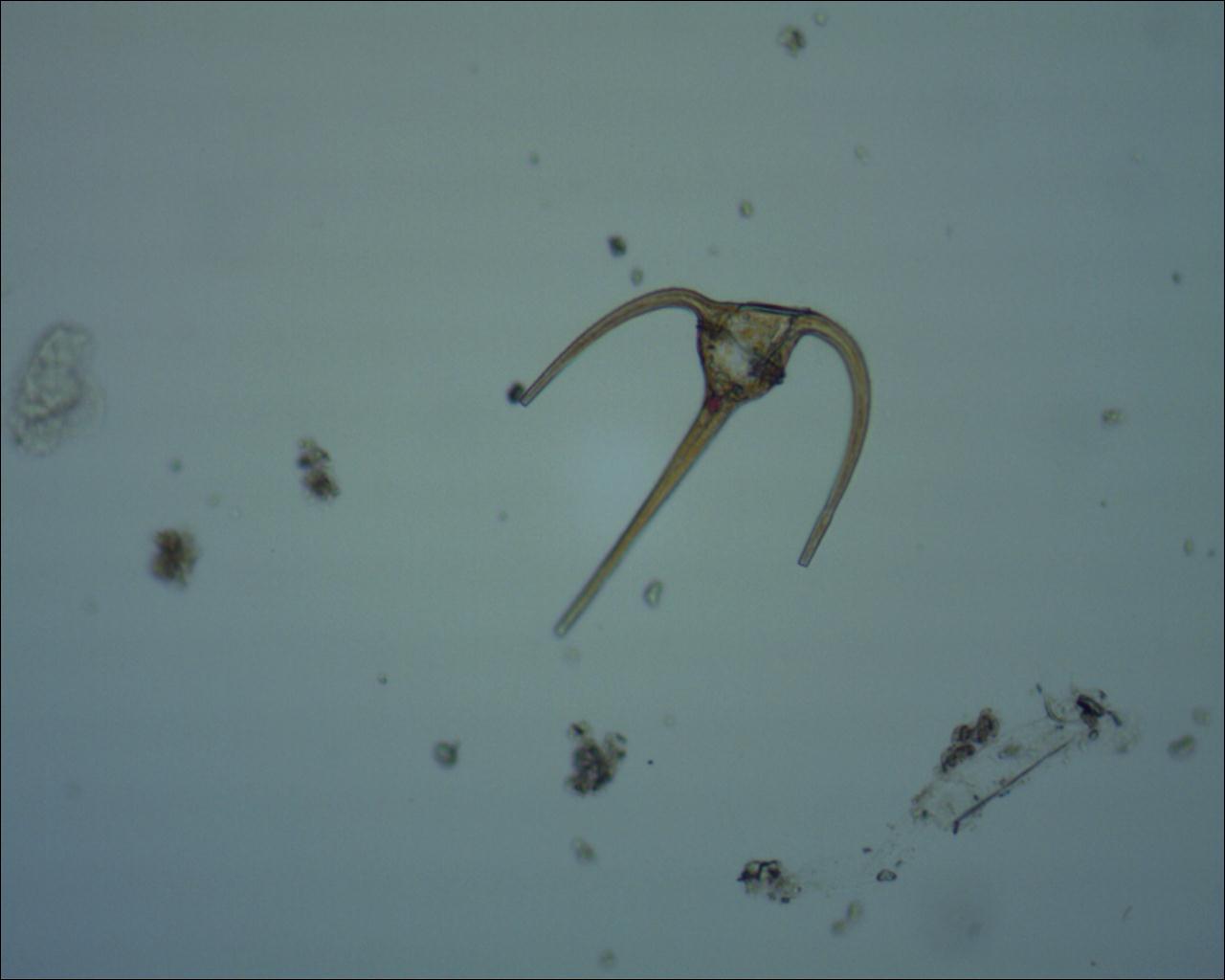 Ceratium est un dinoflagellé cuirassé. Le dinoflagellé doit son nom aux deux flagelles qui le font tournoyer comme une toupie ("dino" = toupie).