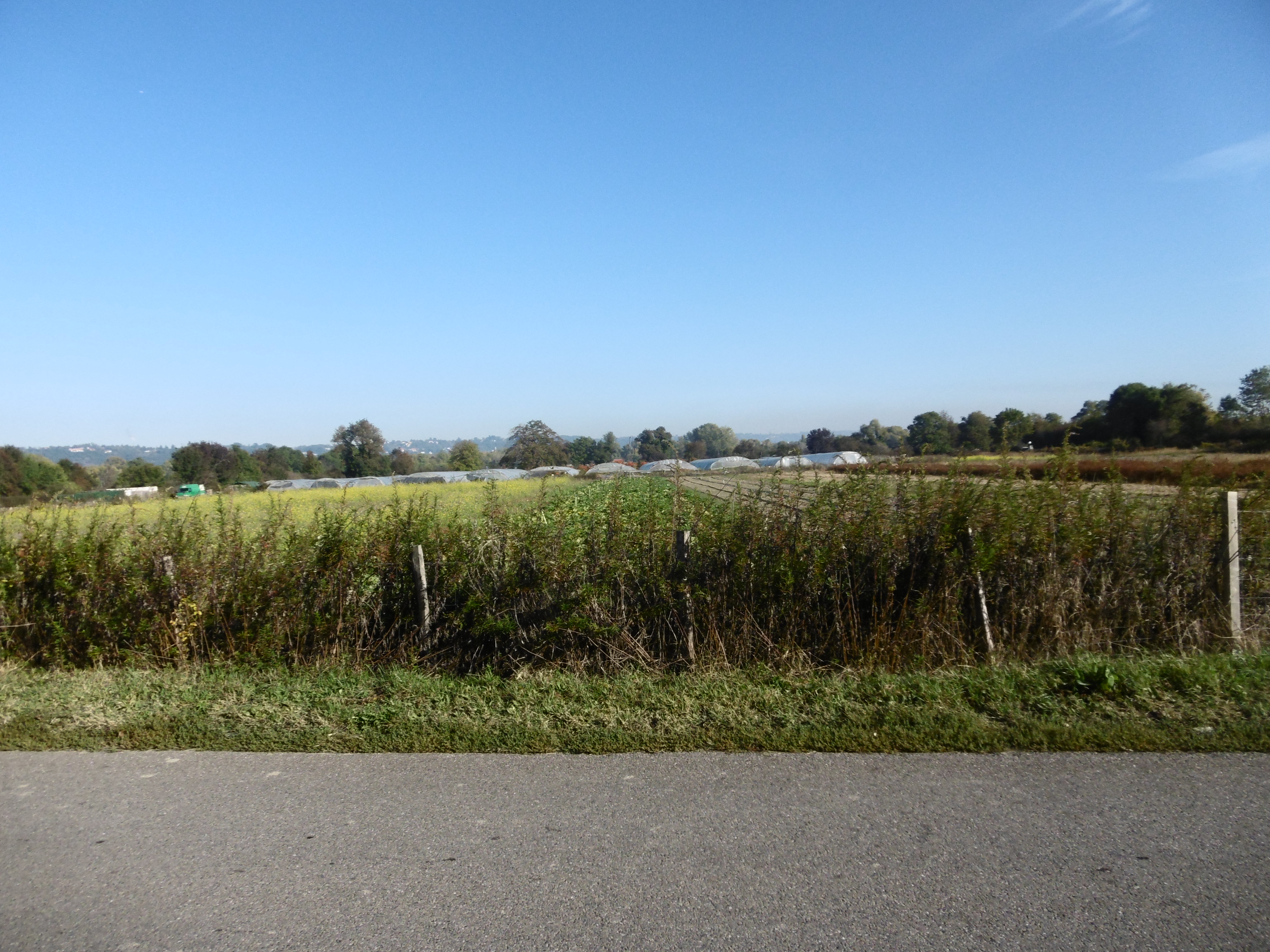 On voit les serres du maraîcher au loin...